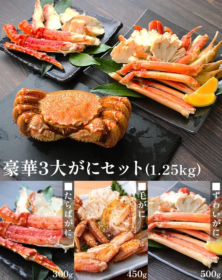 1. 北海道産3大がにセット